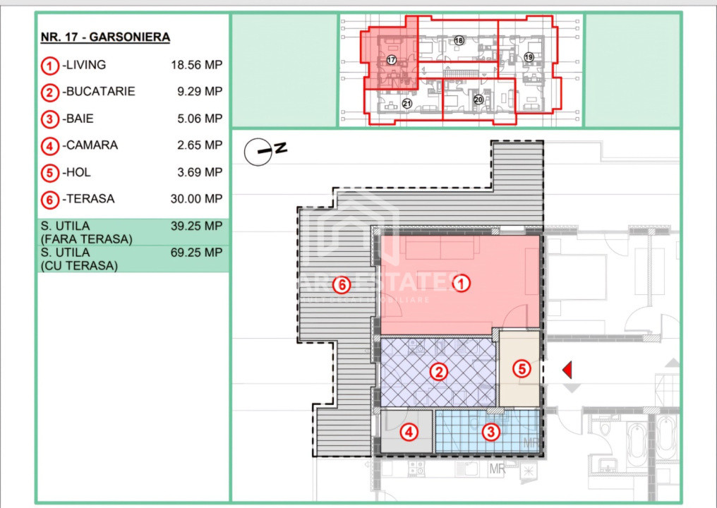 -Terasă: 30 mp, cu acces din living și bucătărie.