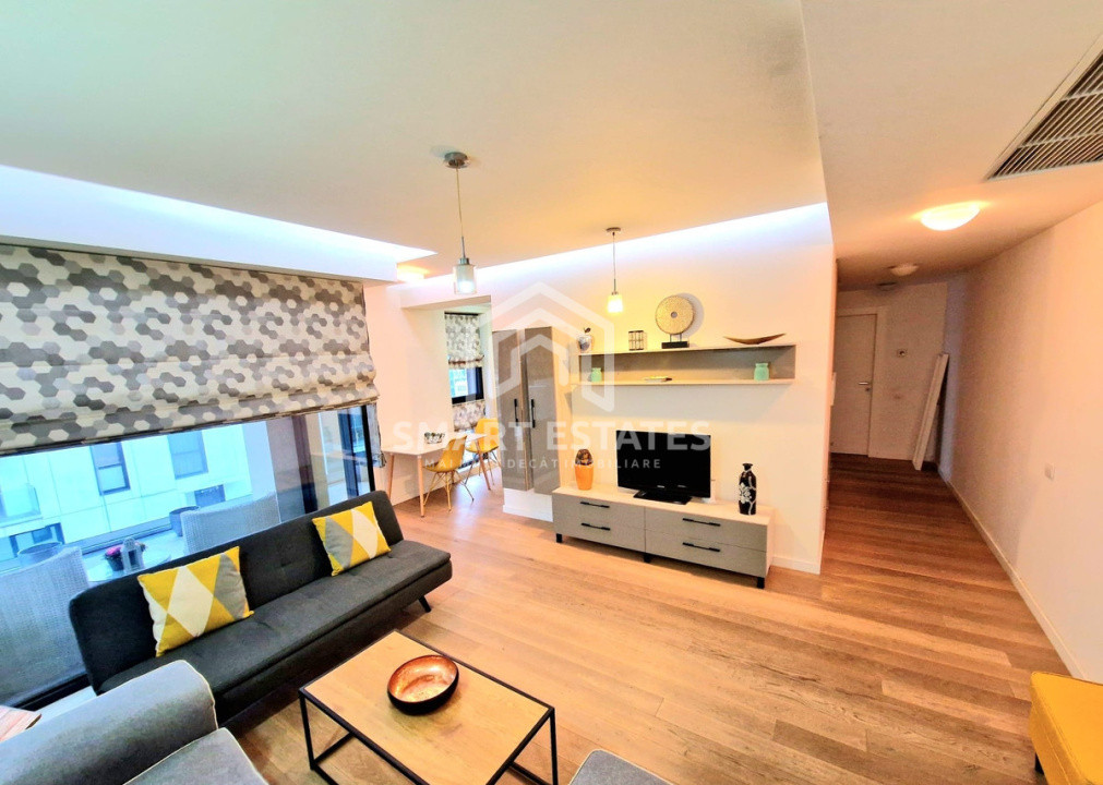 Va propunem spre inchiriere un partament cu 2 camere, situat în zona Herăstrău, în complex rezidențial premium, disponibil la etajul 7. Proprietatea beneficiază de o terasă de 10 mp cu vedere panoramică.