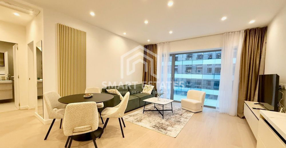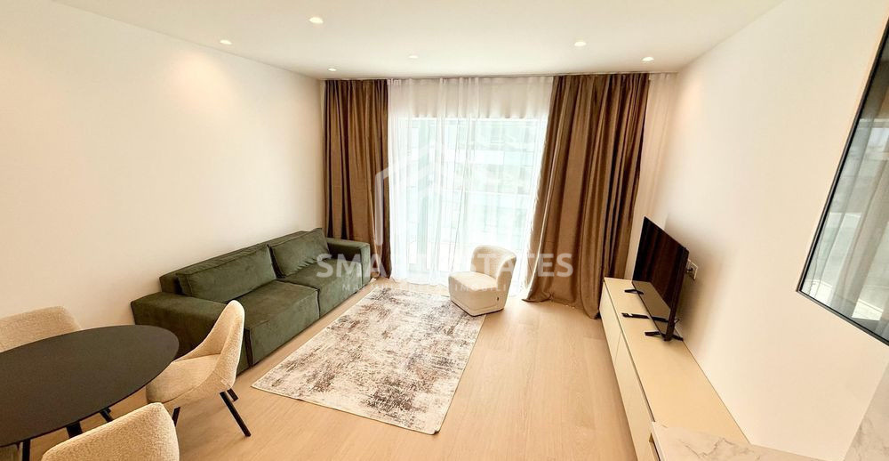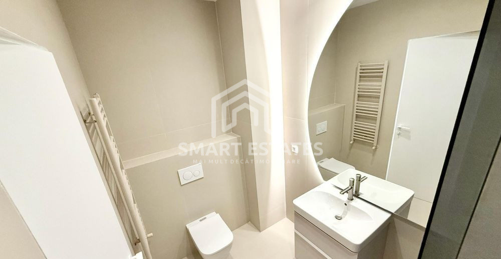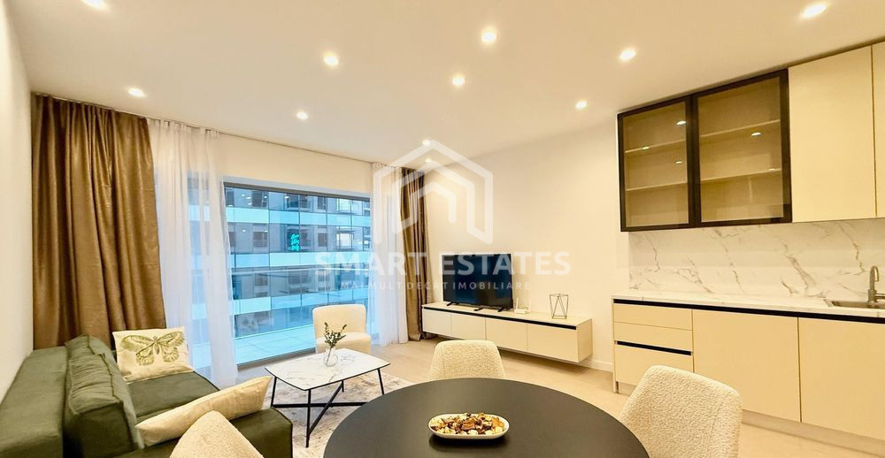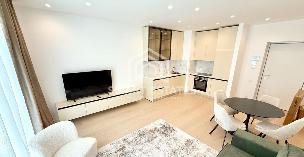 Va propunem spre închiriere un apartament cu 2 camere, complet nou, amenajat de arhitect și situat într-un complex modern, in apropiere de cele mai importante puncte, de birouri si mall Promenada etc, cu un concept foarte bine gândit. Ansamblul beneficiază de pază 24/7, acces securizat, spații comerciale la parter și o zonă comună de terasă pe acoperiș.