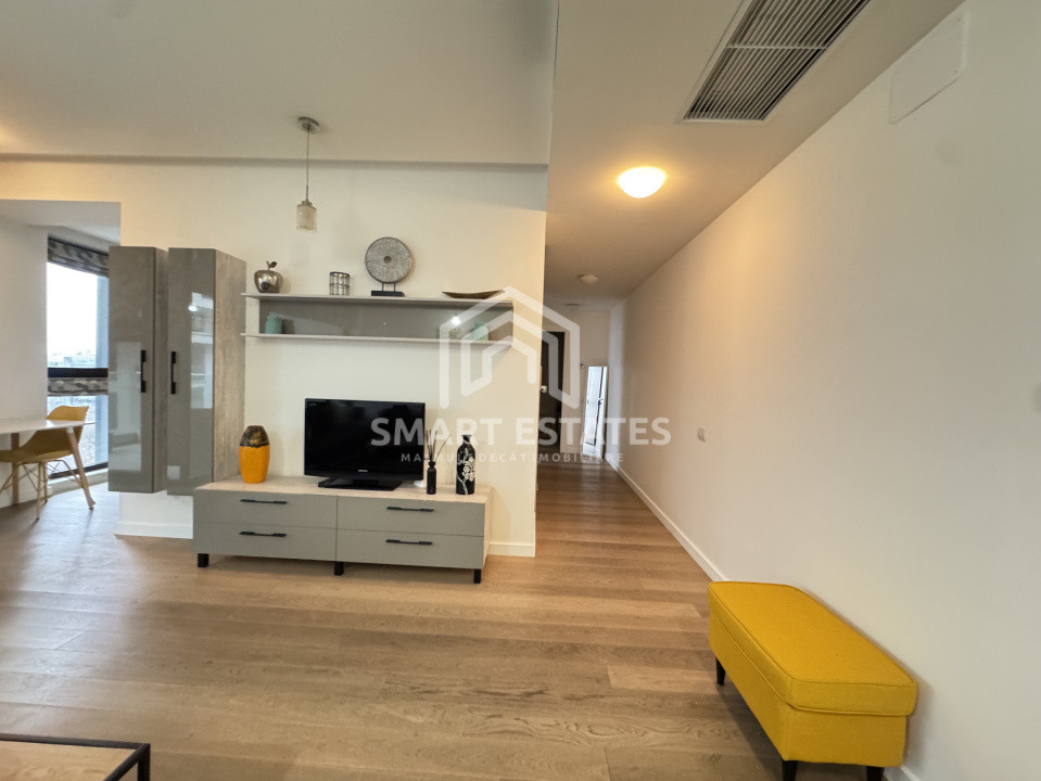 Va propunem spre inchiriere un superb apartament cu 2 camere, situat în zona Herăstrău, în complex rezidențial premium, disponibil la etajul 7. Proprietatea beneficiază de o terasă de 10 mp cu vedere panoramică.