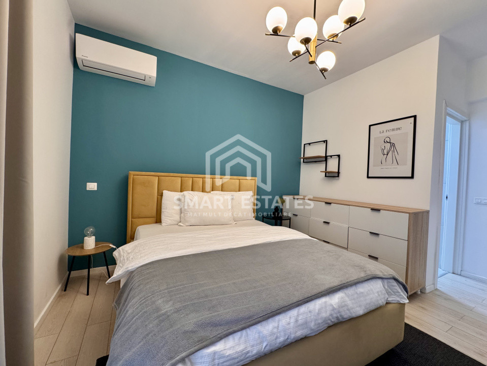 Apartamentul detine numeroase spatii de depozitare, dressing etc, fiind ideal pentru un cuplu care caută un cămin modern și relaxant.