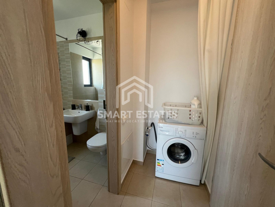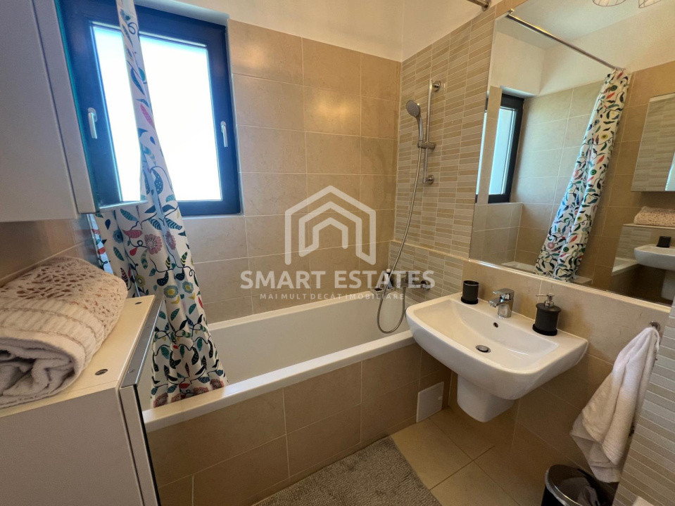 In suprafata de 58 mp - apartametul este decomandat, mobilat si utilat, centrala proprie- incalzire in pardoseala, balcon tip logie cu sistem de sticla glisant, vedere libera spre padure. Bucatarie utilata.