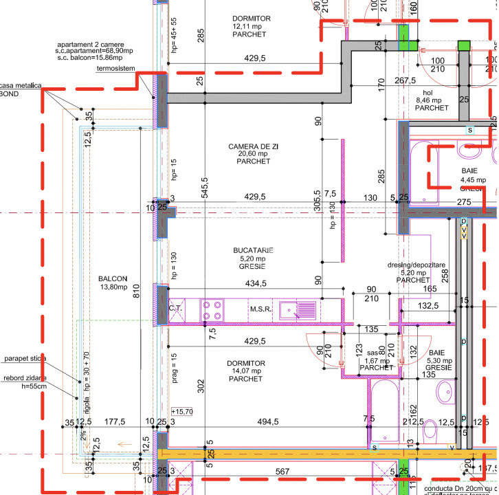 - Bucatarie complet utilata: frigider incorporat, masina de spalat vase, hota, plita pe gaz si cuptor electric Whirlpool