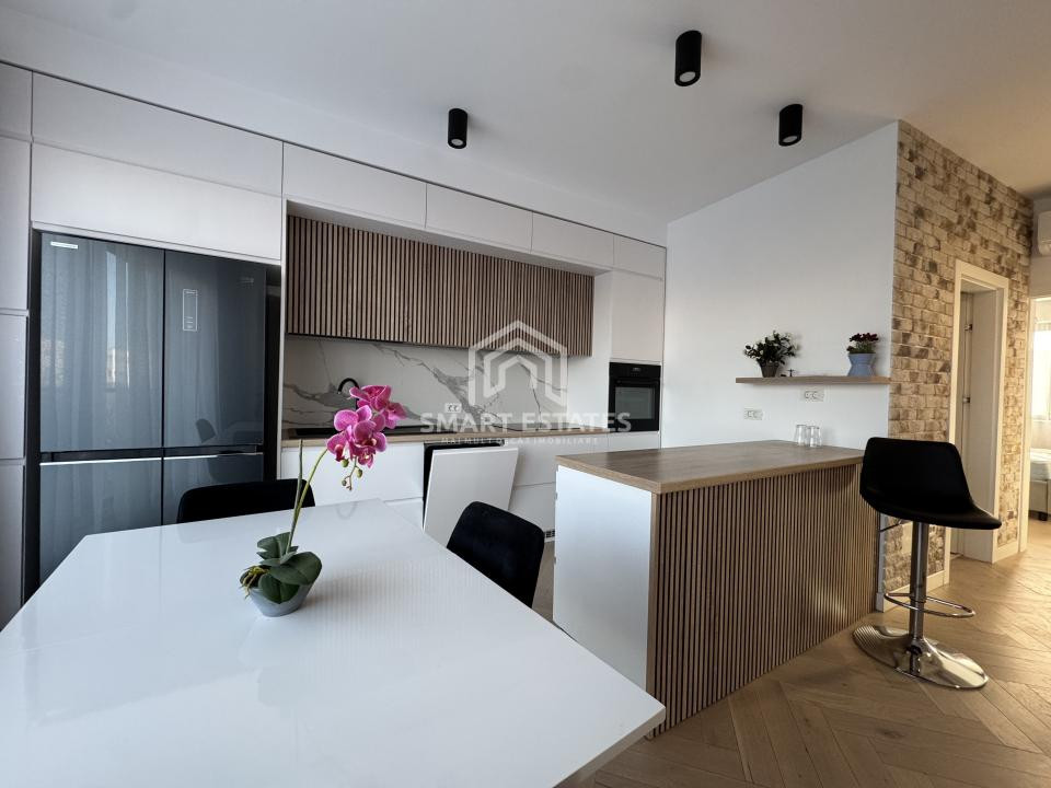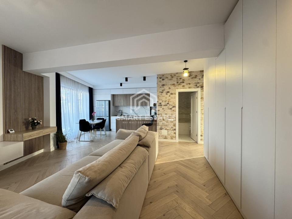 Complet mobilat, cu living open-space și bucătărie echipată premium, dormitor plus o baie. Dotat cu Dressing extrem de sptios pe toata suprafata peretelui din zona de living, Încălzire în pardoseală, finisaje rafinate, gata să te primească acasă.