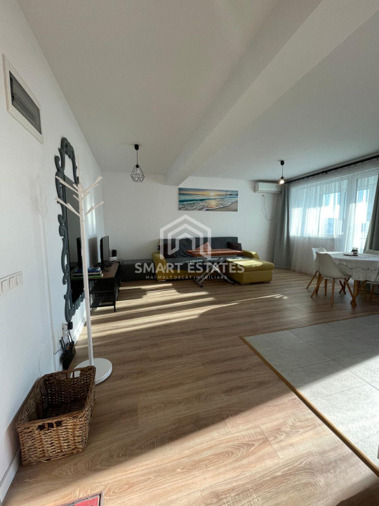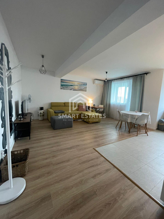 Apartamentul in suprafata de 60 mp este semidecomandat, living spatios cu bucatarie deschisa, este mobilat si echipat modern, centrala termica - incalzire in pardoseala, AC, balcon 4 mp inchis.