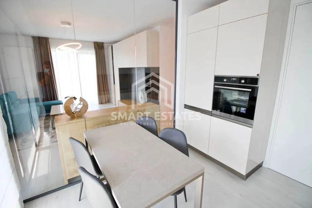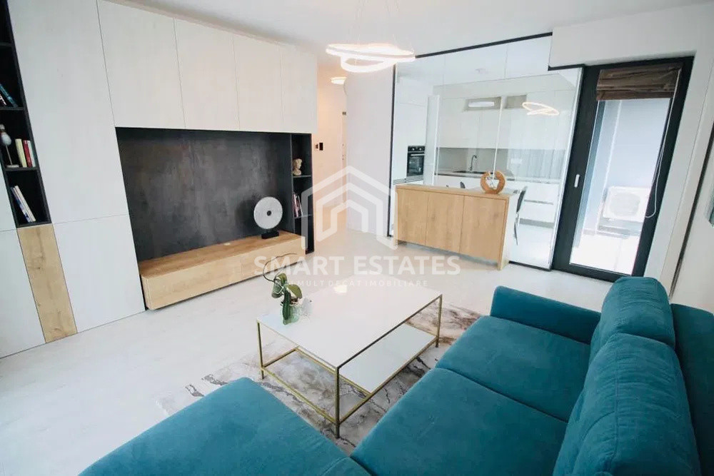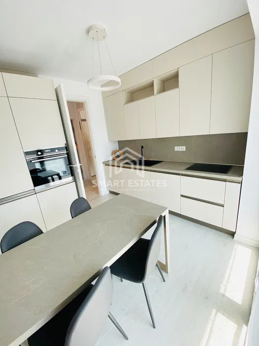 Va oferim spre închiriere un apartament modern cu 2 camere în Cloud 9 Residence, la etajul 1/11. Suprafață de 60 mp utili + terasă, decomandat, mobilat complet cu mobilier Mobexpert & Domicilio, bucătărie premium Rovere cu electrocasnice incorporate.