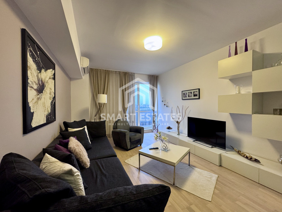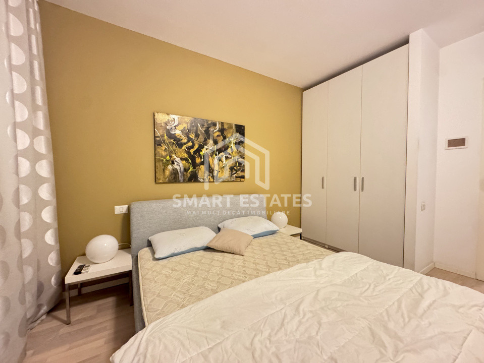 Interiorul este mobilat complet, într-un stil cozy-modern: culori calde, mobilier practic, detalii curate. Living generos, dormitor luminos și bucătărie separată, utilată cu tot ce ai nevoie pentru un start fără griji.