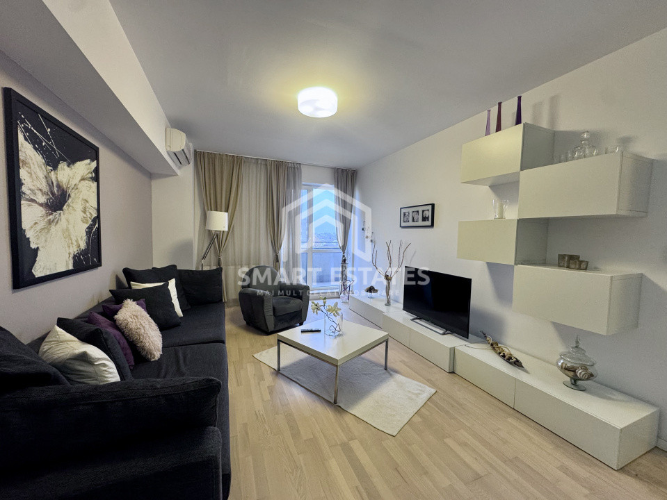 Interiorul este mobilat complet, într-un stil cozy-modern: culori calde, mobilier practic, detalii curate. Living generos, dormitor luminos și bucătărie separată, utilată cu tot ce ai nevoie pentru un start fără griji.
