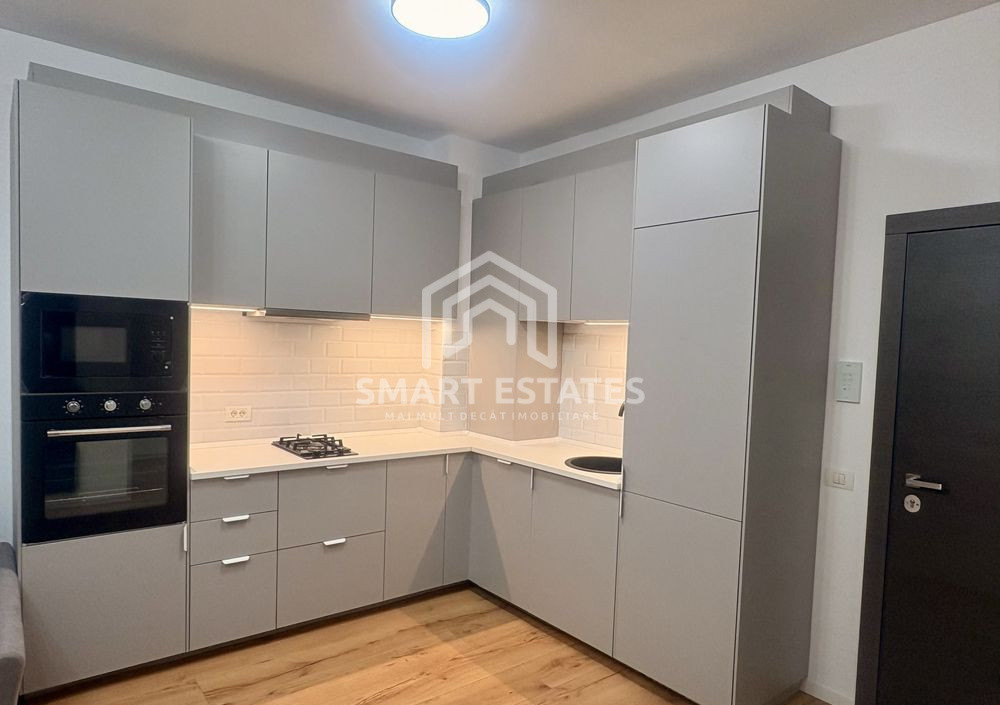 - Bucătărie complet echipată: plită, cuptor, hotă, frigider cu congelator, mașină de spălat vase