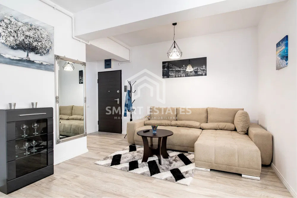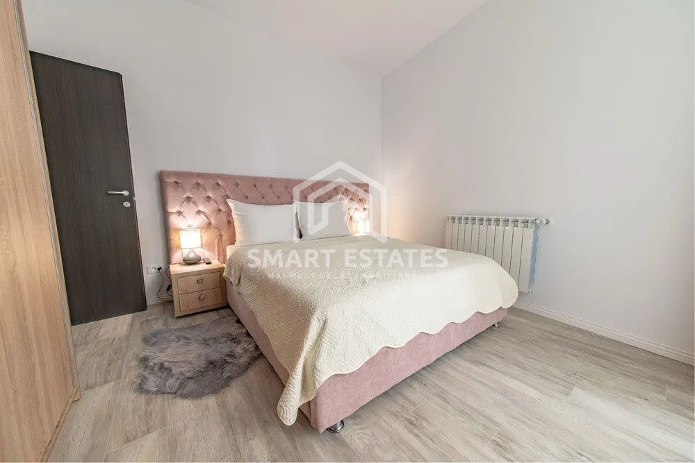 Dispune de un living luminos echipat cu canapea , TV, AC, dormitor cu pat matrimonial, dressing incapator, 1 baie.