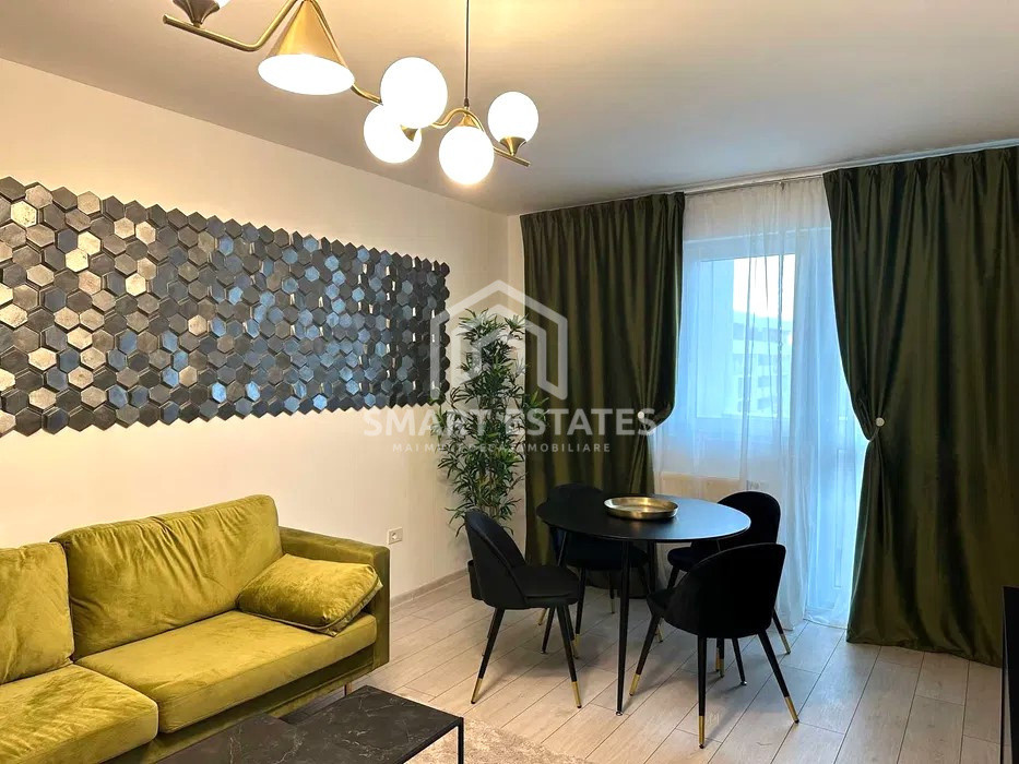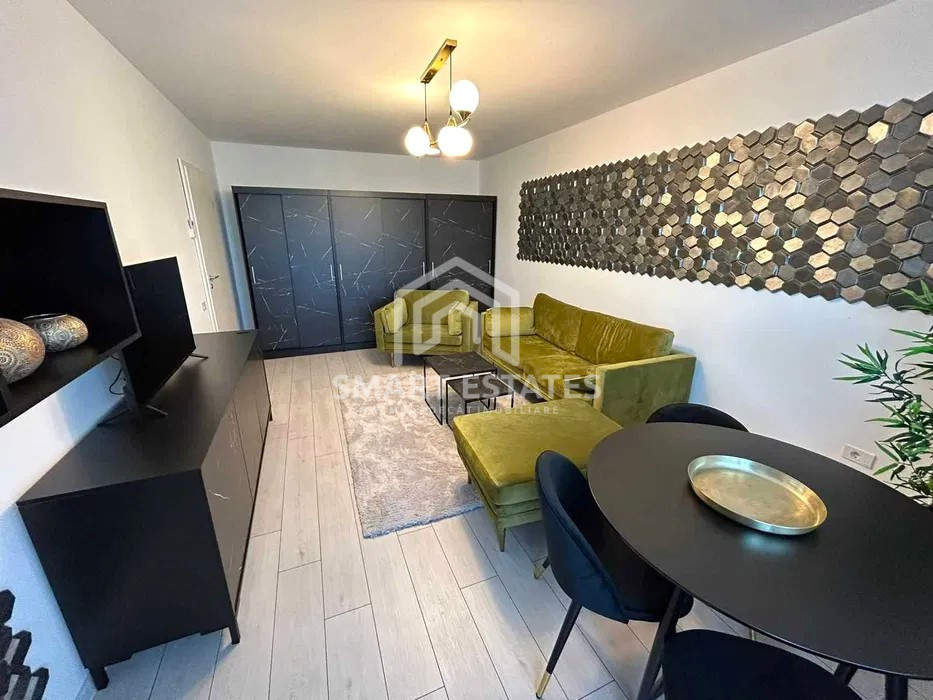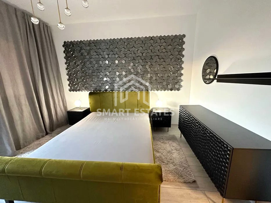 Dispune de un living luminos echipat cu canapea , TV, AC, dormitor cu pat matrimonial, dressing incapator, 1 baie.