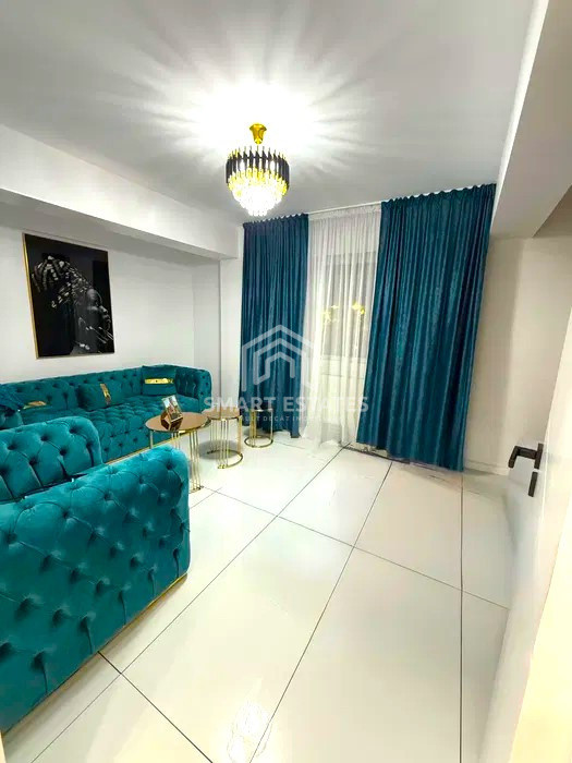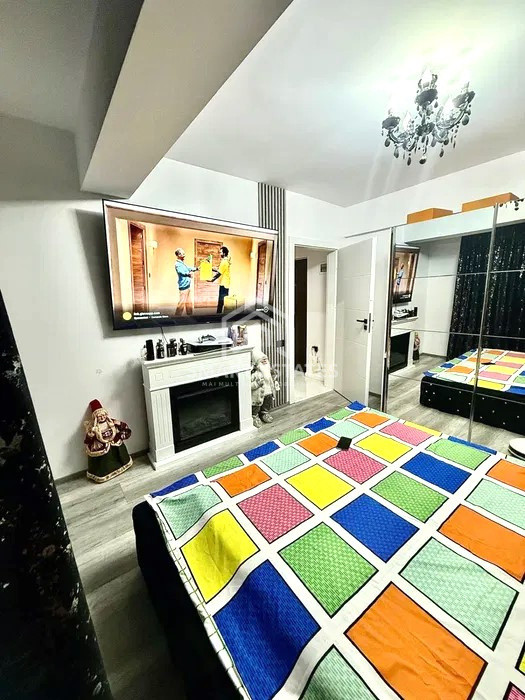 Dispune de un living luminos echipat cu canapea, TV, AC, dormitor cu pat matrimonial, dressing incapator, 1 baie.