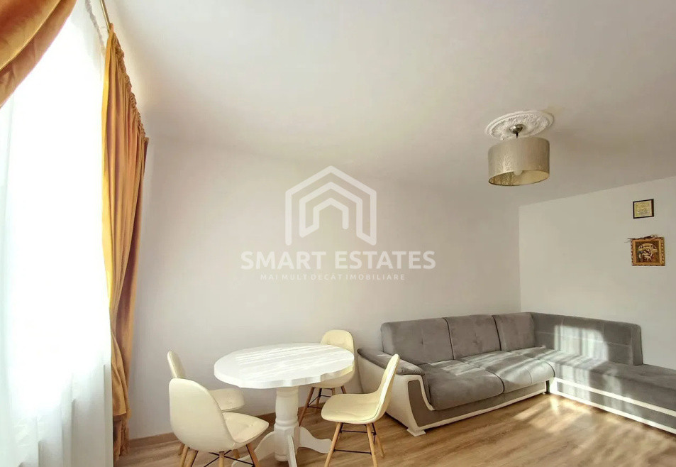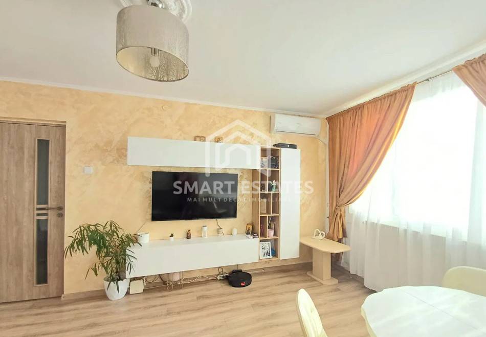 Dispune de un living luminos echipat cu o canapea extensibila, TV, AC, dormitor cu pat matrimonial, dressing incapator, 1 baie.