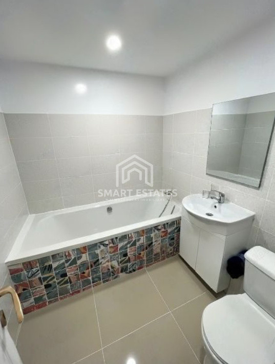 Apartamentul beneficiază de finisaje moderne (gresie porțelanată, faianță actuală, iluminat LED) și se vinde complet echipat. Livingul este luminos și primitor, dormitorul oferă spațiu generos de depozitare, iar bucătăria este complet utilată și include zonă de dining. Baia este modernă, dotată cu cadă.