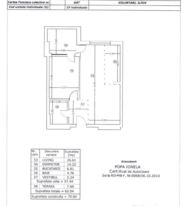 Locuința are o suprafata de 58 mp utili și o terasă de 8 mp care surprinde perfect apusul.