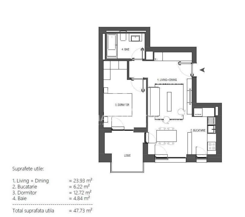• 48 mp utili + logie generoasă de 7 mp