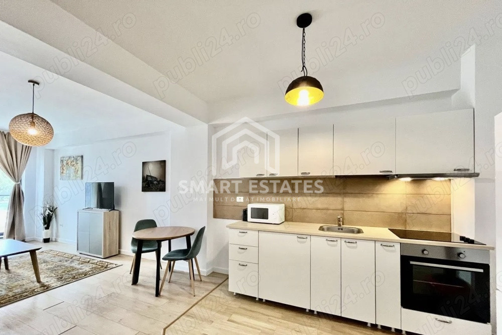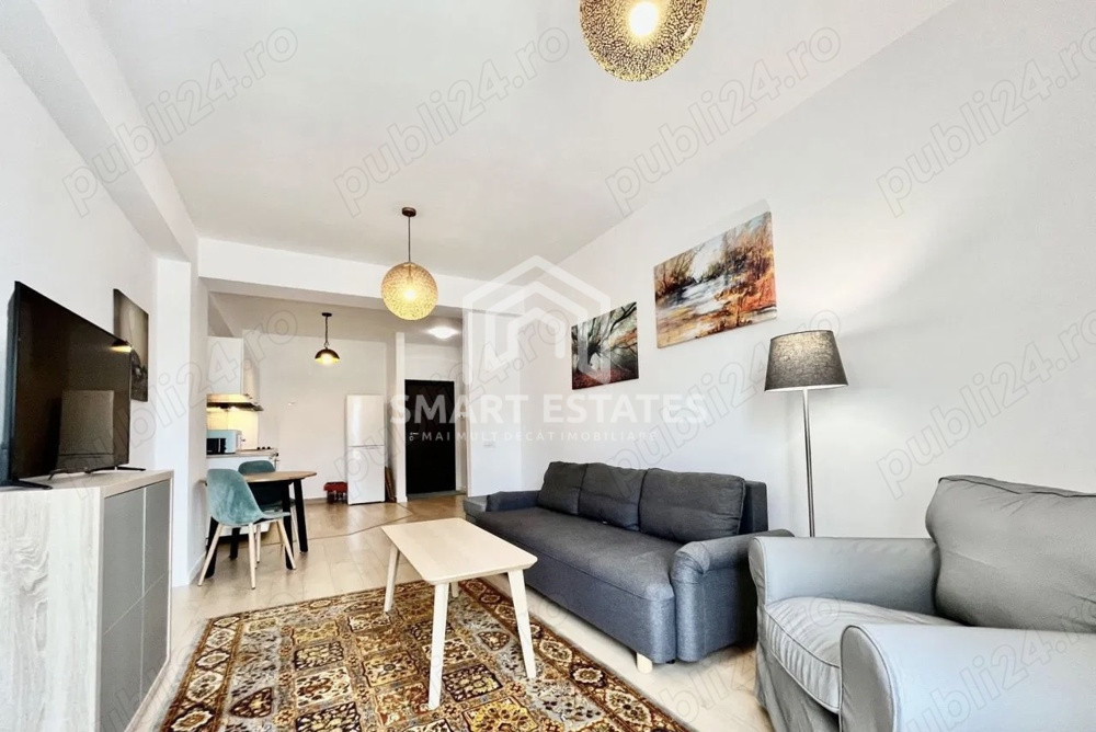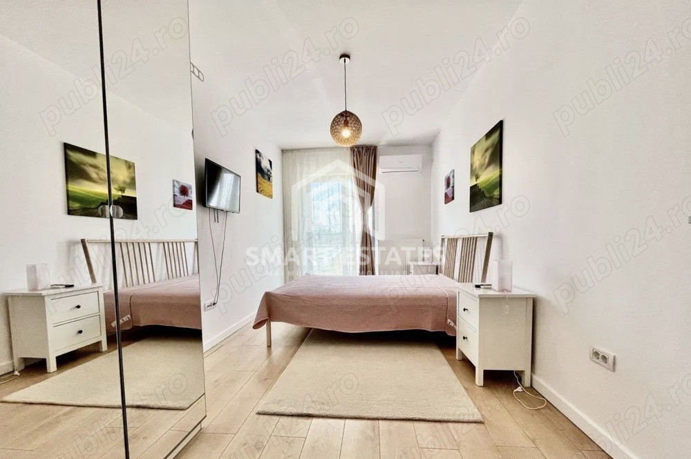 Apartamentul este compartimentat eficient, cu pereți integral din cărămidă, și se vinde complet mobilat și utilat, fiind pregătit pentru mutare imediată sau investiție. Mobilierul este de calitate (IKEA), iar electrocasnicele incluse sunt: plită, hotă, cuptor electric, frigider, mașină de spălat, cuptor cu microunde, aer condiționat, televizoare, precum și mici electrocasnice (ex: sandwich maker).