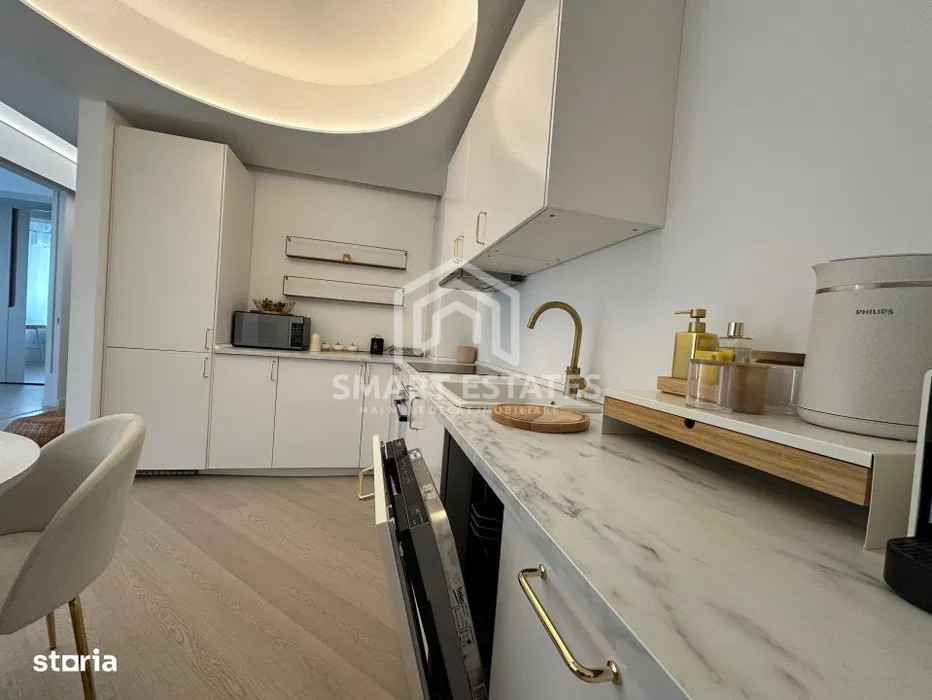 Bucătărie open-space, complet utilată cu electrocasnice premium și multiple spații de depozitare