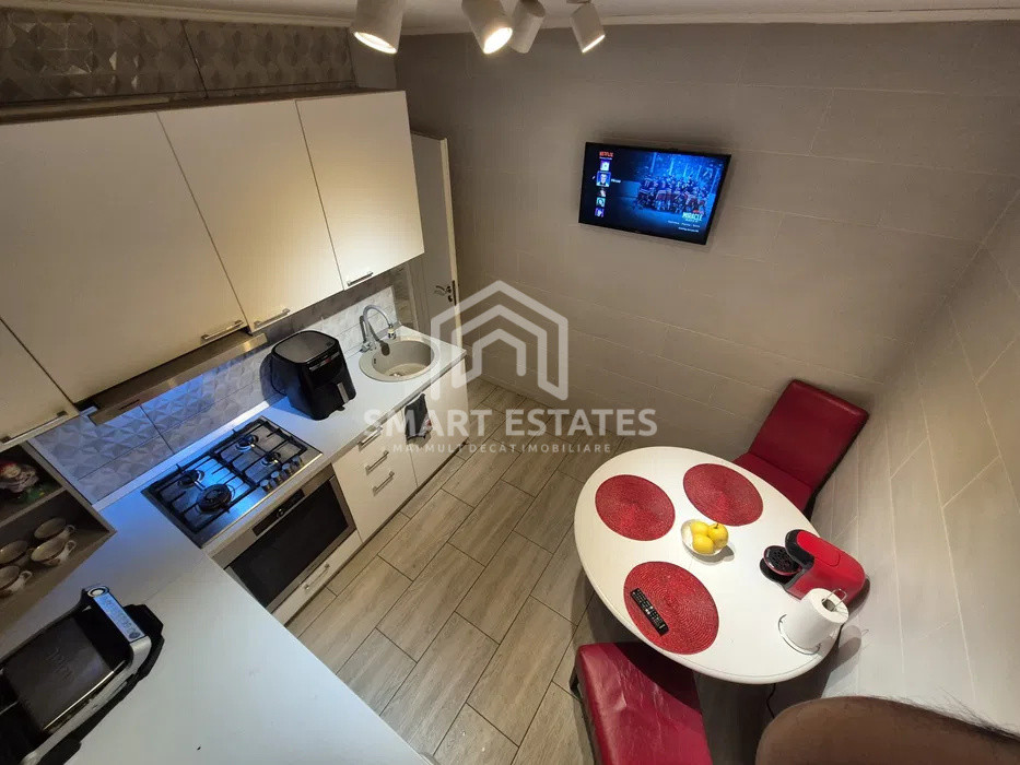 Apartamentul beneficiază de o poziționare stradală, cu o compartimentare echilibrată: zona de zi are deschidere către bulevard, iar dormitoarele sunt orientate către spate, oferind liniște și intimitate. Proprietatea a fost renovată complet în 2020, inclusiv instalațiile electrice și sanitare, și se vinde complet mobilată și utilată, fiind pregătită pentru mutare imediată.
