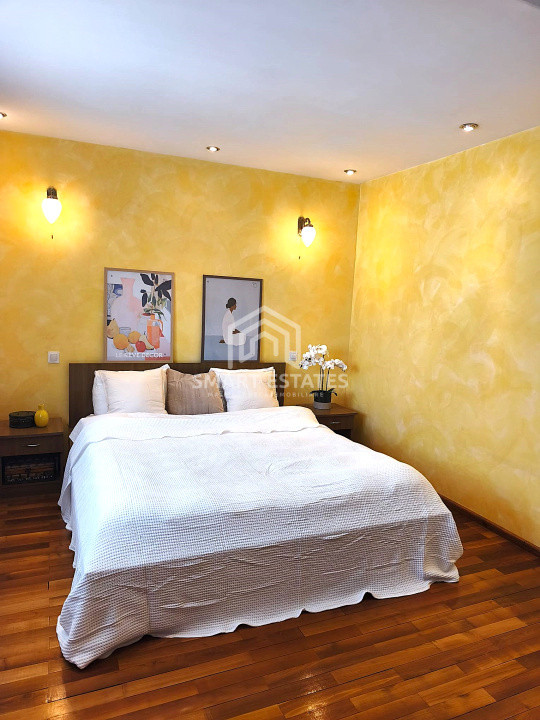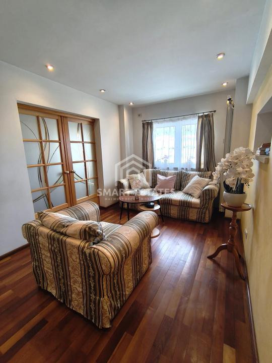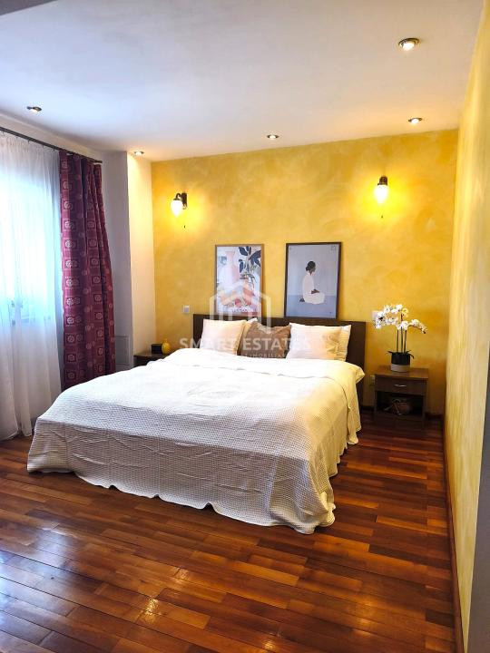 Încă de la intrare, apartamentul impresionează prin atmosfera caldă și primitoare. Livingul este spațios, luminos și amenajat cu bun gust, iar parchetul din lemn masiv de stejar, prezent în întreaga locuință, adaugă eleganță și rafinament. Dormitorul matrimonial este generos, perfect pentru relaxare, iar finisajele în tonuri calde contribuie la un ambient plăcut și armonios.