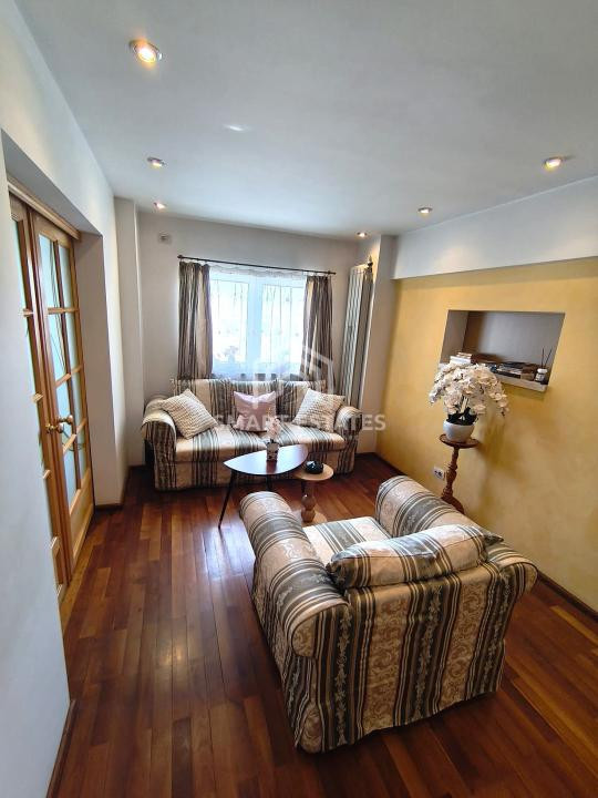 Încă de la intrare, apartamentul impresionează prin atmosfera caldă și primitoare. Livingul este spațios, luminos și amenajat cu bun gust, iar parchetul din lemn masiv de stejar, prezent în întreaga locuință, adaugă eleganță și rafinament. Dormitorul matrimonial este generos, perfect pentru relaxare, iar finisajele în tonuri calde contribuie la un ambient plăcut și armonios.