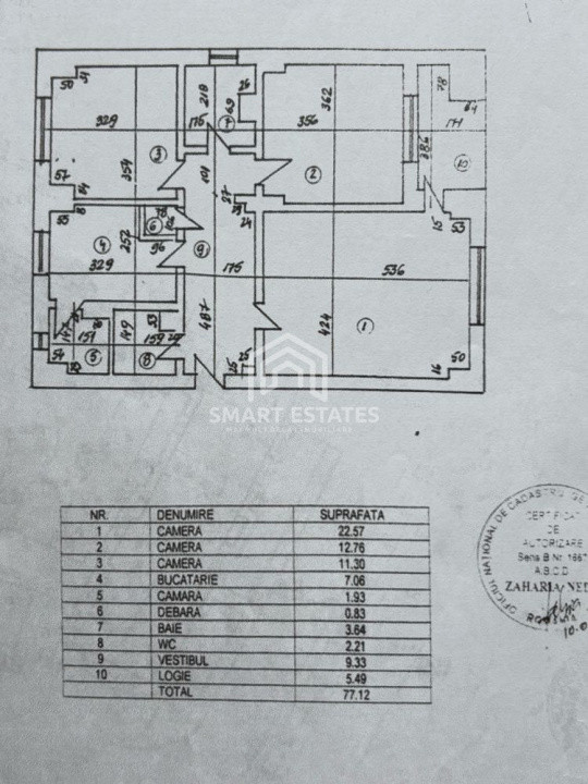 Smart Estates vă propune spre vânzare un apartament spațios cu 3 camere, decomandat, cu 77 mp suprafață utilă, situat la etajul 8 al unui bloc monolit finalizat în anul 2000. Proprietatea beneficiază de o compartimentare eficientă și de multiple îmbunătățiri care îi conferă confort, siguranță și un stil modern.