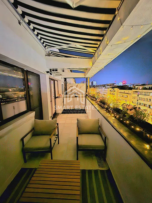Dispune de un living luminos echipat cu canapea , TV, AC, dormitor cu pat matrimonial, dressing incapator, 3 bai.