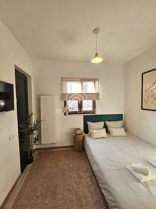 Dispune de un living luminos echipat cu canapea , TV, AC, dormitor cu pat matrimonial, dressing incapator, 3 bai.