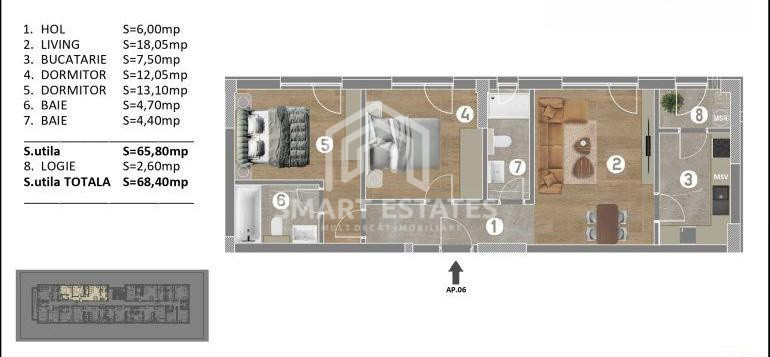 - Suprafață utilă totală: 68,40 mp