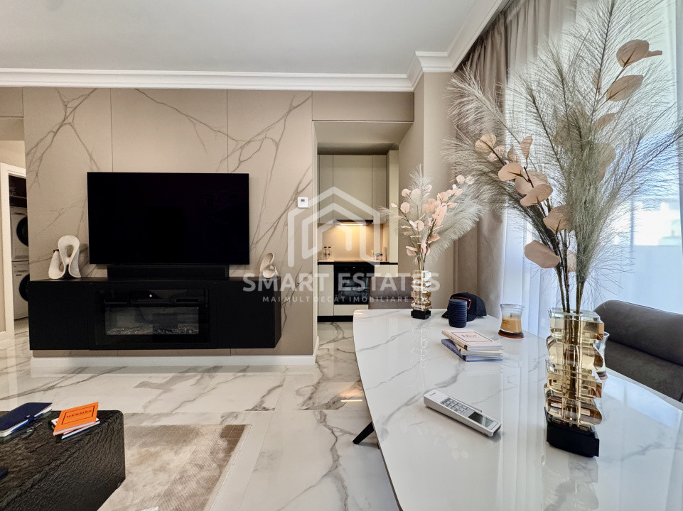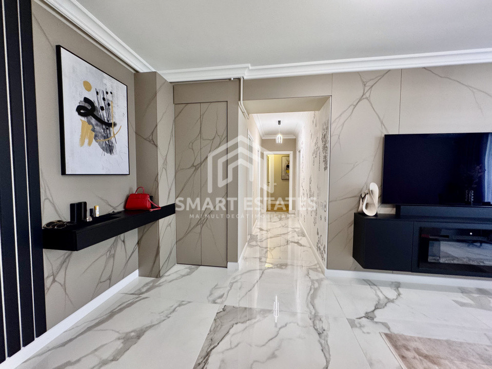Apartamentul se remarcă printr-un design interior sofisticat, cu mobilier executat integral pe comandă și finisaje premium.