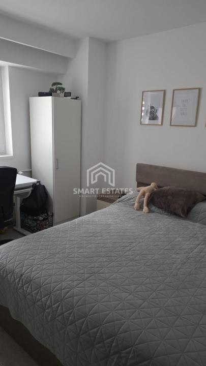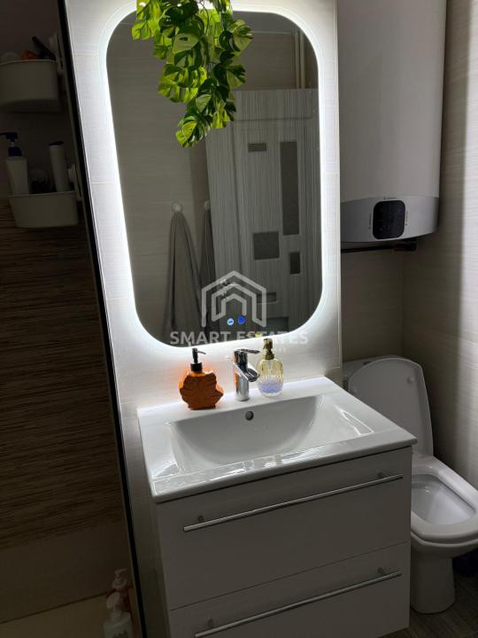 Apartamentul se vinde complet mobilat și utilat, fiind pregătit pentru a fi locuit imediat. Bucătăria este dotată cu toate electrocasnicele necesare, livingul este luminos și echipat cu canapea, TV și aer condiționat, iar dormitorul matrimonial beneficiază de un dressing încăpător. Inițial apartamentul dispunea de două băi, însă una a fost desființată pentru a extinde spațiul, rămânând astfel o singură baie funcțională, spațioasă și modernă.