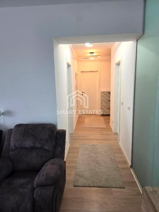 Apartamentul este complet mobilat și utilat, bucătăria fiind echipată cu toate electrocasnicele necesare. Locuința dispune de un living luminos, 2 dormitoare cu pat matrimonial, dressing generos și 2 băi.