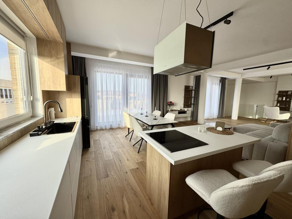 Proprietatea se află într-un imobil boutique cu doar 4 etaje, oferind intimitate și un stil de viață rafinat. Dispuse pe etajele 3 și 4, spațiile însumează 215 mp utili și sunt completate de o terasă spectaculoasă de 50 mp, cu vedere liberă asupra orașului — locul perfect pentru dimineți liniștite sau seri relaxante.