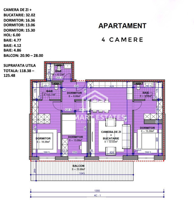 Preț 4 CAMERE - 119 mp: 270981 EURO + TVA 19%