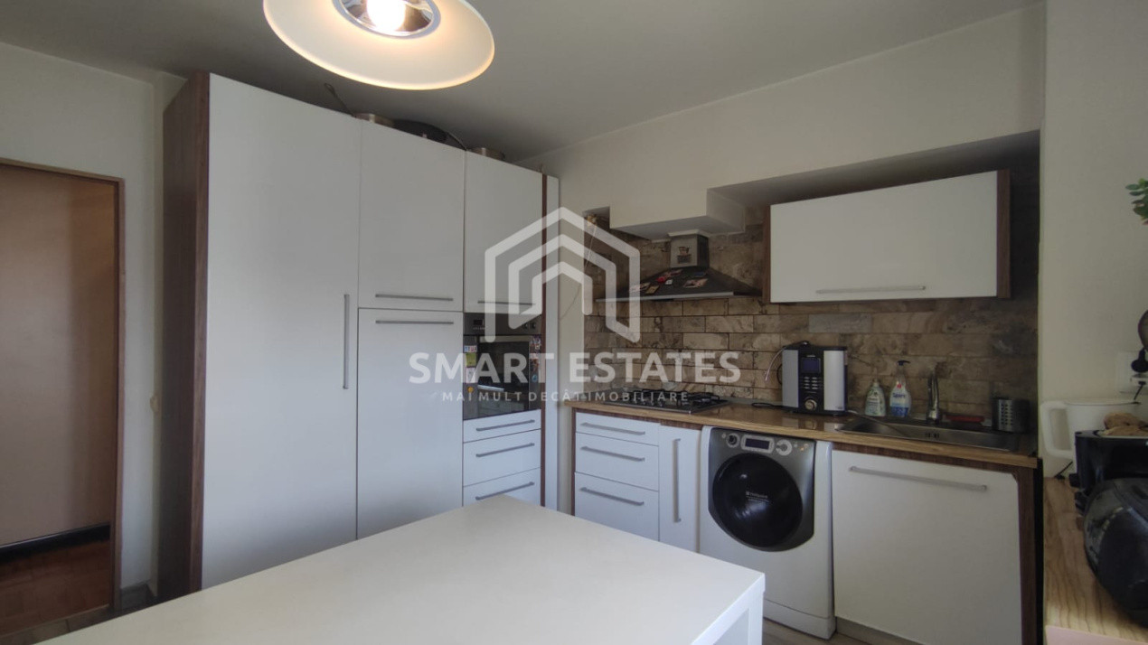 Apartamentul a trecut printr-o renovare completa in urma cu 9 ani, pastrandu-si aspectul ingrijit si modern. Bucataria complet mobilata si utilata este pregatita pentru mesele in familie, iar dressingul generos din hol adauga un plus de ordine si organizare. In sufragerie, o parte din mobilier poate ramane – daca iti place atmosfera deja conturata aici.