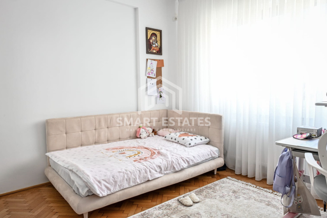 Proprietatea se afla la etajul 3 din 5, bloc cu lift, pe un palier aerisit cu doar doua apartamente, si beneficiaza de compartimentare ideala: 4 camere spatioase si luminoase, 2 bai, bucatarie dubla, balcon, spatii de depozitare si boxa la subsol.