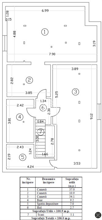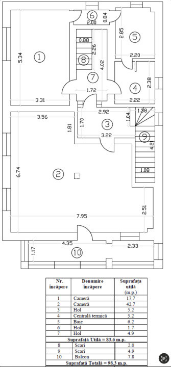 - WC de serviciu la parter, cu un hol generos de aproximativ 10 mp – ideal ca spatiu de primire oaspeti