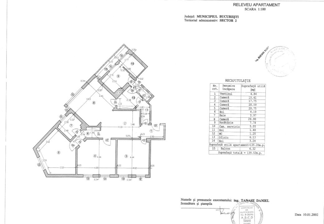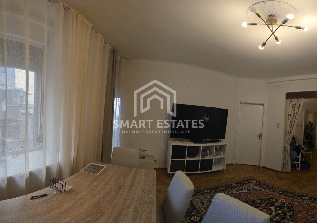 Apartamentul este amplasat la etajul 4 din 6 al unui imobil dotat cu lift si dispune de camere mari, luminoase si o compartimentare versatila, care permite multiple variante de amenajare, atat pentru locuire, cat si pentru activitati de tip mixt.