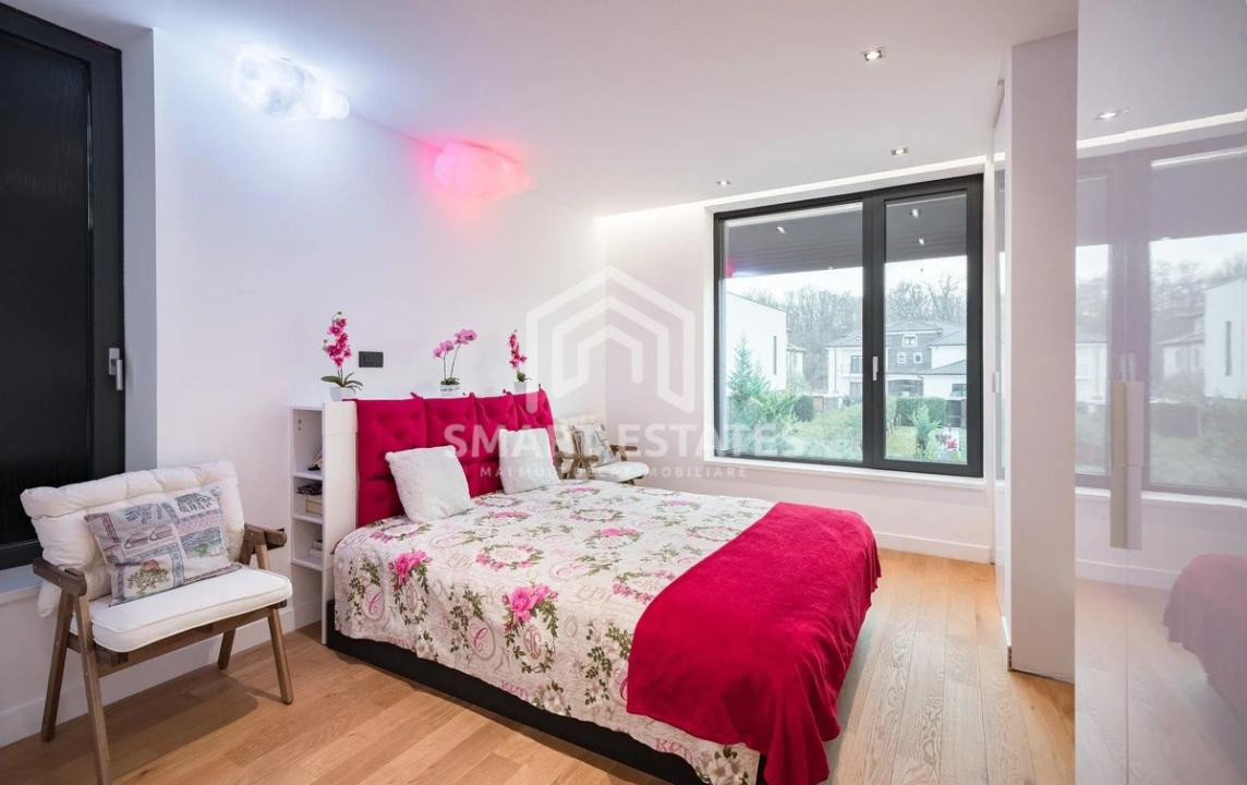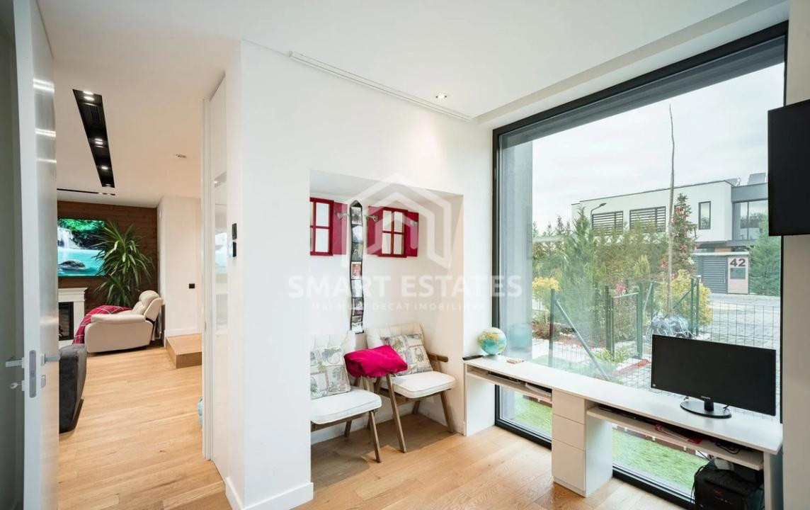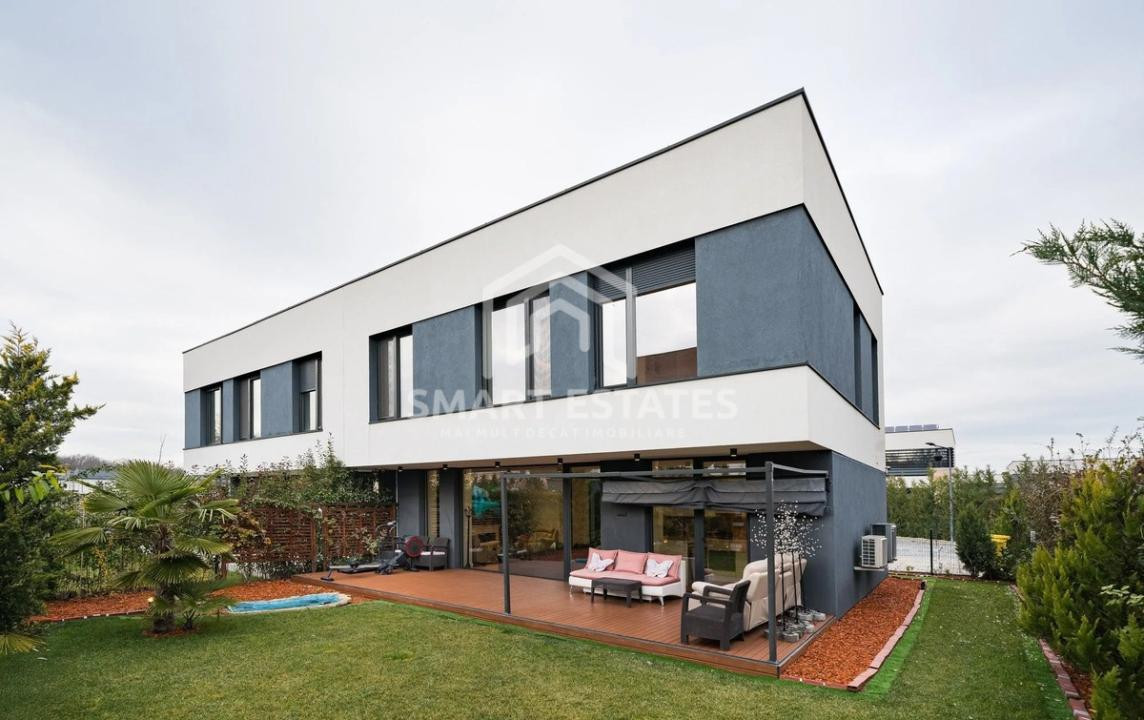 Vila impresionează prin designul modern, arhitectura contemporană și compartimentarea eficientă, fiind complet finisată și mobilată cu materiale de calitate superioară, pregătită pentru mutare imediată.