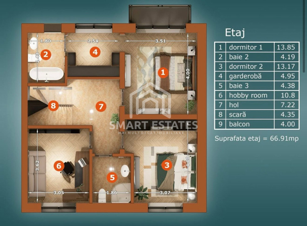 - 3 dormitoare