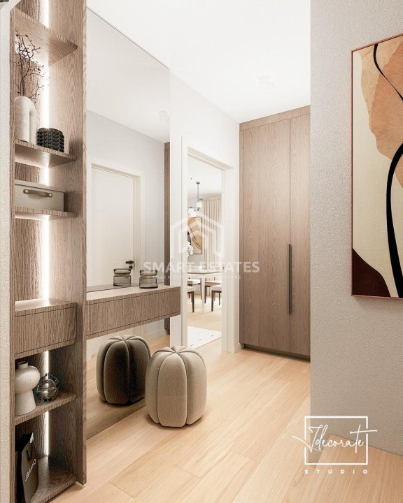 • Etaj: 3 dormitoare, balcon, baie pe hol. Dormitorul matrimonial dispune de baie proprie și dressing.