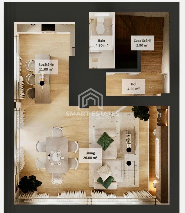 • Parter: hol de intrare, living, bucătărie închisă, baie.