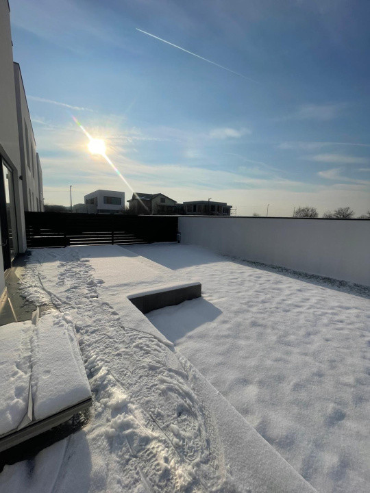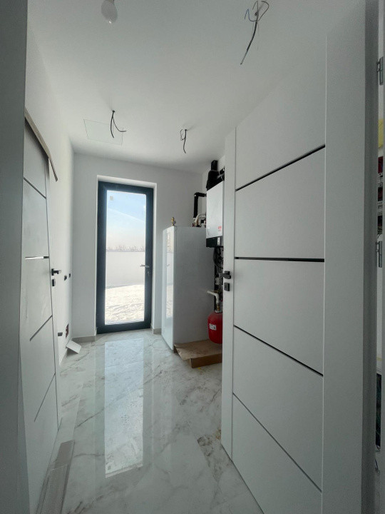Parter - Living 42 mp + bucatarie openspace 17 mp, baie si camera tehnica ; terasa exterioara si gradina aprox 200 mp