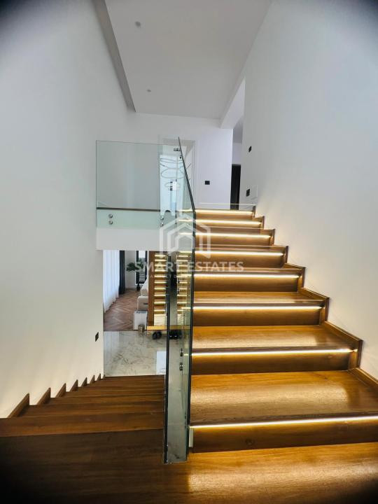 Proprietatea are o amprenta de 120 mp din totalul de 350 mp de teren aferent si este foarte bine compartimentata - ofera camere mari si luminoase, cu atentie la detalii si finisaje la standarde premium de constructie si este compusa dupa cum urmeaza: