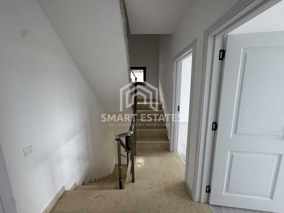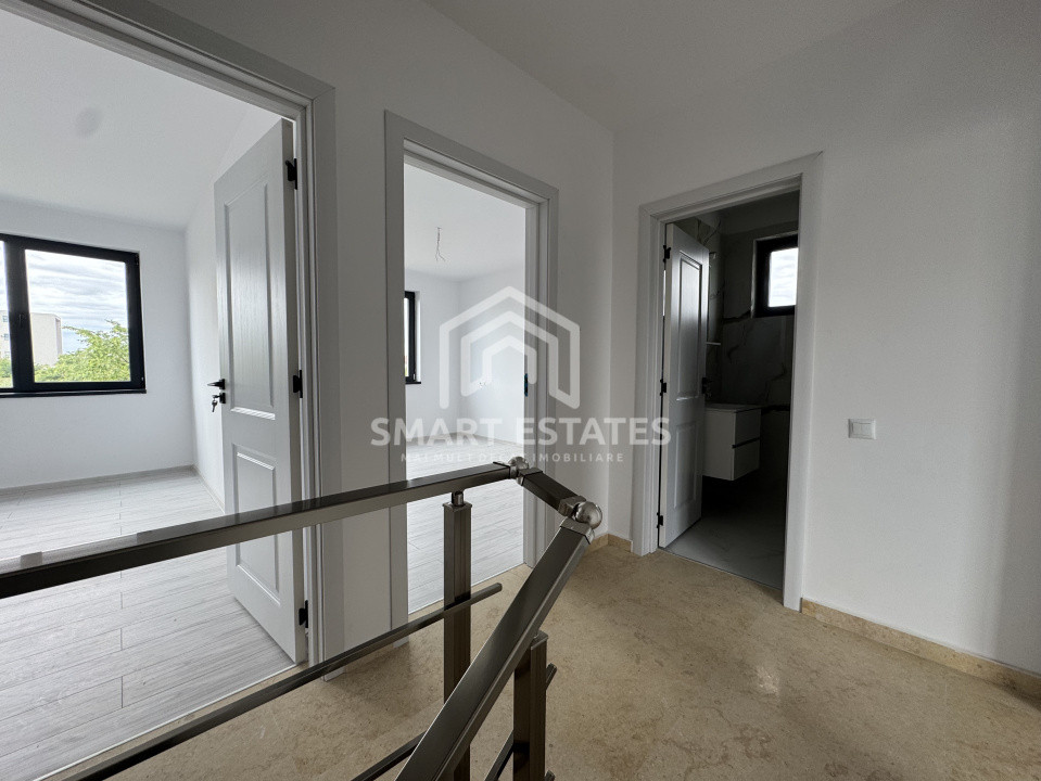 Etaj: trei dormitoare, dintre care unul matrimonial cu baie proprie, plus o baie pe hol