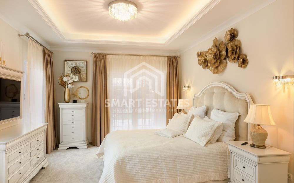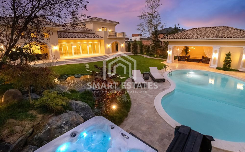 Casa se remarca prin aspectul elegant si prin atentia la detalii cu care a fost construita. Finisajele sale, de inalta calitate, aduc un confort sporit, pus la dispozitie nu doar de amplul spatiu locativ, ci si de piscina exterioara, foisor, spatiile de parcare si curtea generoasa, amenajata de un peisagist. Exteriorul sau, cu acoperis din tigla ceramica si suprafete vitrate extrem de generoase, aminteste de vilele clasice toscane, sporindu-i farmecul.