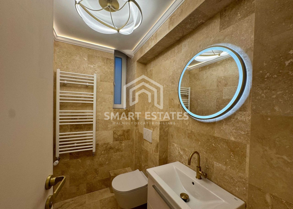 Avem placerea de a va propune spre vânzare un apartament de lux, complet renovat în 2024, situat la demisolul unui imobil interbelic solid (P+2), fără risc seismic, cu pereți de 60 cm și izolație foarte bună. Locație excepțională: Calea Dorobanți, la doar cateva minute de ASE, Sheraton și Piața Romană.