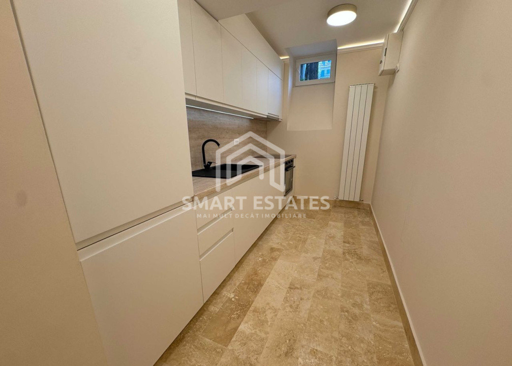 Avem placerea de a va propune spre vânzare un apartament de lux, complet renovat în 2024, situat la demisolul unui imobil interbelic solid (P+2), fără risc seismic, cu pereți de 60 cm și izolație foarte bună. Locație excepțională: Calea Dorobanți, la doar cateva minute de ASE, Sheraton și Piața Romană.