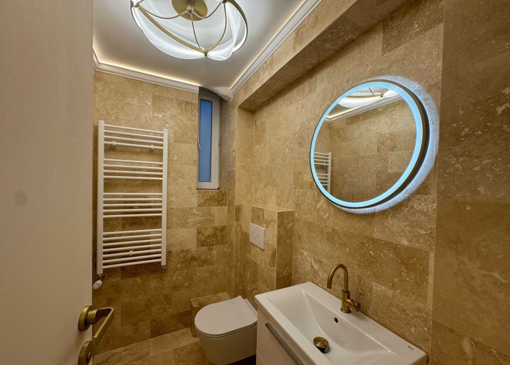 Avem placerea de a va propune spre vânzare un apartament de lux, complet renovat în 2024, situat la demisolul unui imobil interbelic solid (P+2), fără risc seismic, cu pereți de 60 cm și izolație foarte bună. Locație excepțională: Calea Dorobanți, la doar cateva minute de ASE, Sheraton și Piața Romană.