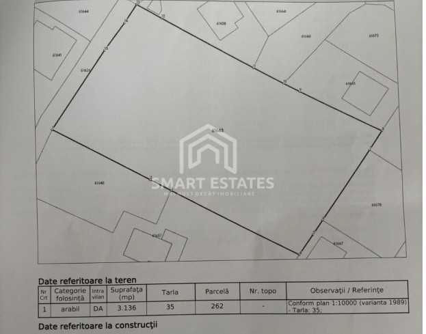 Teren cu utilități existente, ideal pentru dezvoltare rezidențială, parcelare sau construcția a unui proiect de vile. Deschiderea la stradă este de 42 m, iar accesul este realizat la drum public .